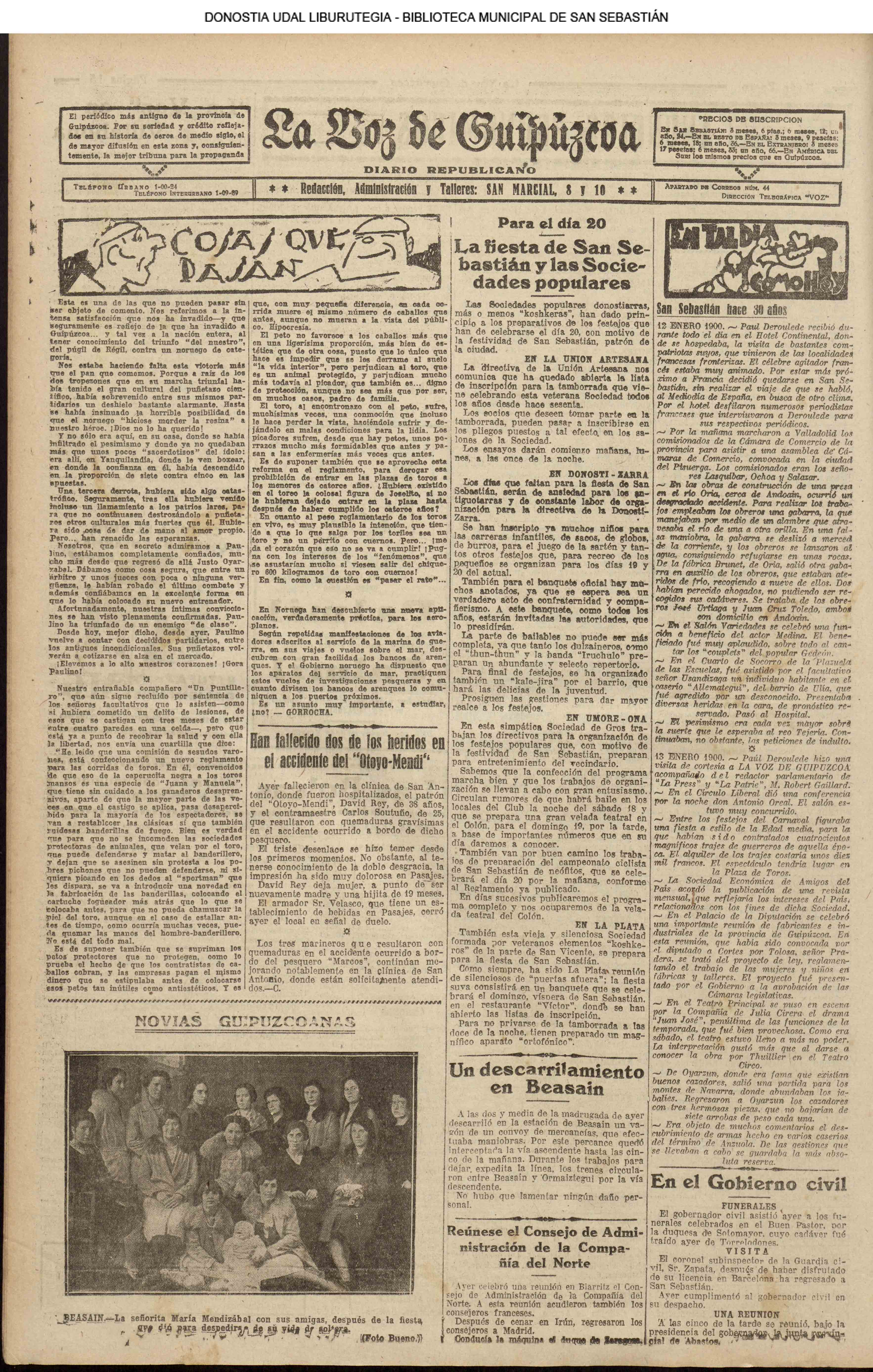 12.01.- Para el día 20 - La fiesta de San Sebastián y las Sociedades populares
